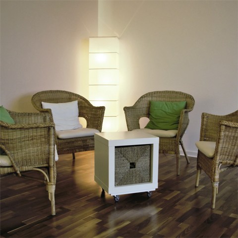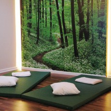 Für das Autogene Training stehen bequeme Korbsessel und weiche Bodenmatten zur Verfügung. Auch für Methoden, die mehr Raum benötigen, wie z.B. Familienaufstellungen / Familienskulpturen, eine Timeline oder das Embodiment, ist genügend Raum.